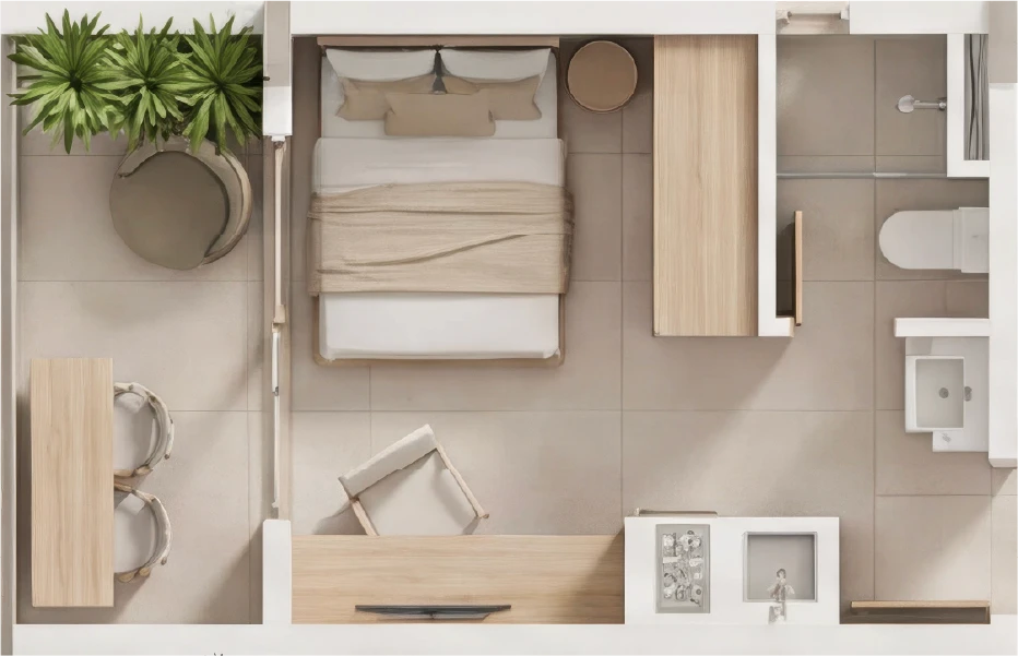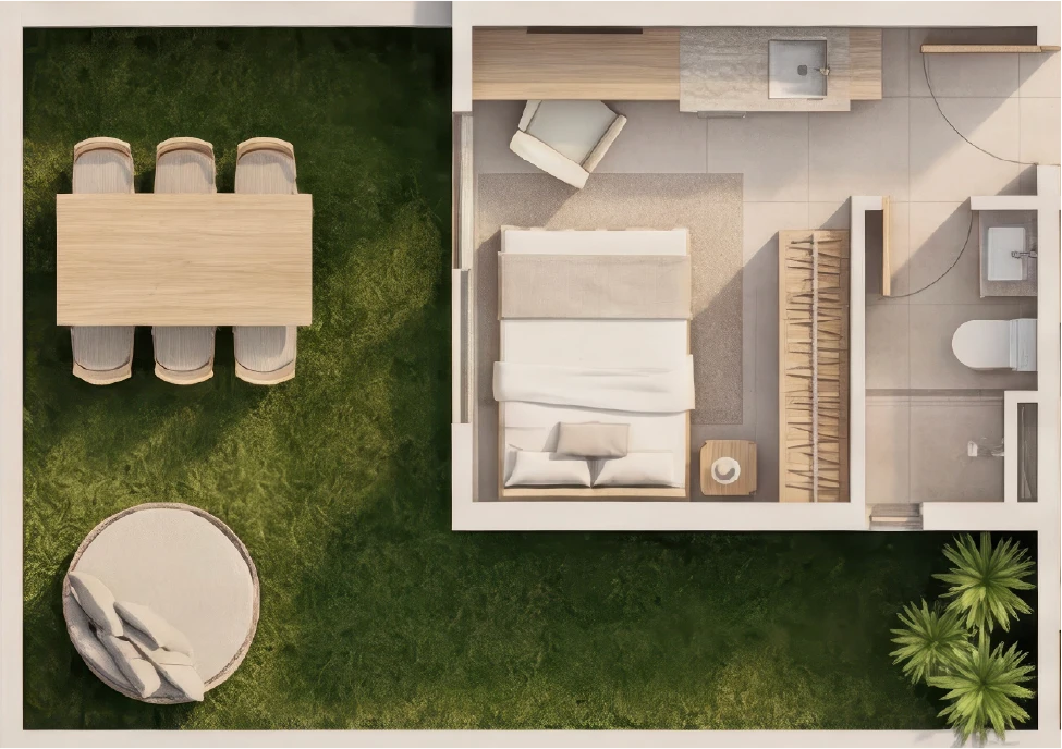 Studios e gardens projetados com cada metro quadrado no lugar certo.